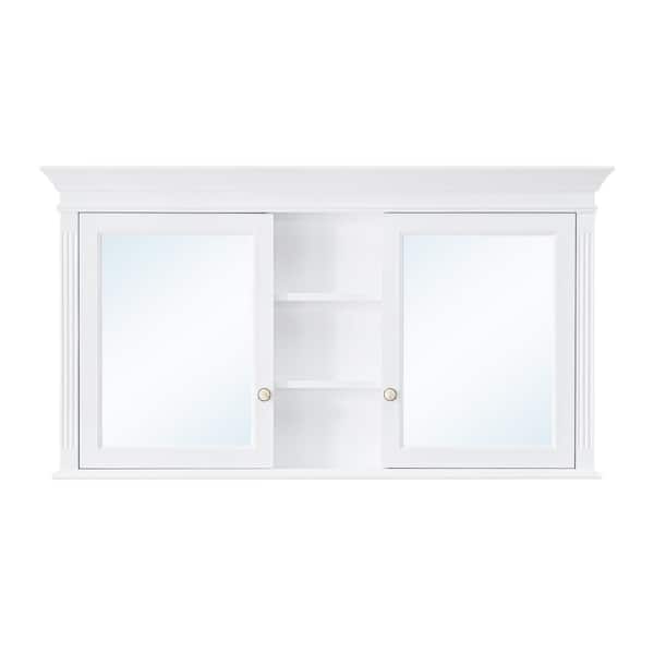 55 in. W x 30 in. H White Rectangular Wood Surface Mount Medicine Cabinet with Mirror and Shelves, 2 Soft Close Doors
