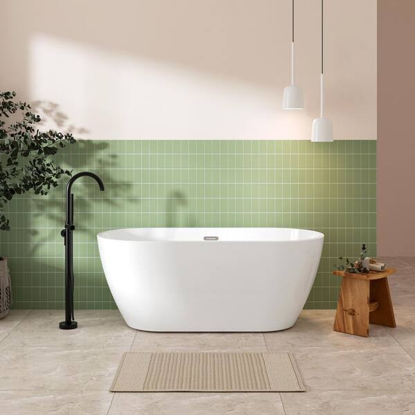 59 in. x 29 in. Freestanding Soaking Bathtub in Glossy White with Chrome Center Drain