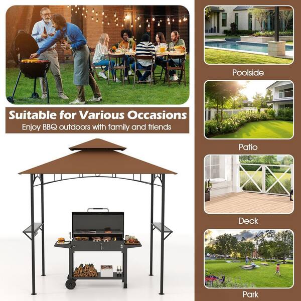 8 ft. x 5 ft. Brown Double-Tiered Steel Grill Gazebo with 2 Shelves and 7 Hooks