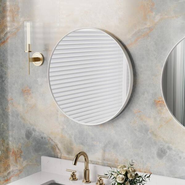 BELLA 24 in. W x 24 in. H Round Aluminum Framed Wall-Mounted Bathroom Vanity Mirror in White