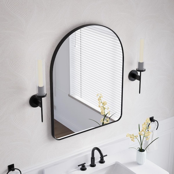 BELLA 28 in. W x 36 in. H Arch Anodized Aluminum Framed Bathroom Vanity Mirror in Matte Black