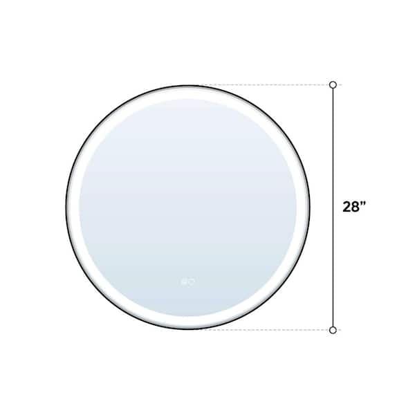 BONIE 28 in. W x 28 in. H Round Framed Anti-Fog LED Wall Bathroom Vanity Mirror in Matte Black