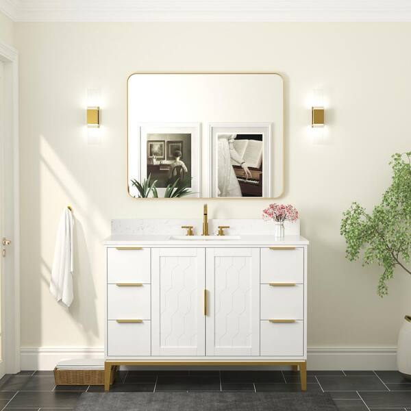 Bella 40 in. W. x 32 in. H Rectangular Aluminum Framed Wall-Mounted Bathroom Vanity Mirror in Brushed Gold