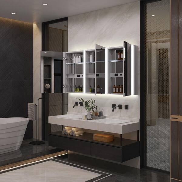 CHIC 60 in. W x 30 in. H Rectangular Aluminum Surface Mount Medicine Cabinet with Mirror and Lighted, Dimmer, Defogger