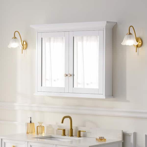 EAB Series 40 in. W x 30 in. H Rectangular Solid Wood Medicine Cabinet with Mirror with Double Door