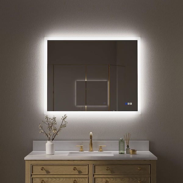 Galaxy 40 in. W x 32 in. H Rectangular Frameless LED Anti-Fog Wall-Mounted Bathroom Vanity Mirror in Aluminum