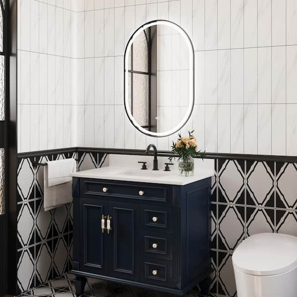HELIO 24 in. W x 36 in. H Oval Framed LED Dimmable Anti-Fog Wall Bathroom Vanity Mirror in Matte Black
