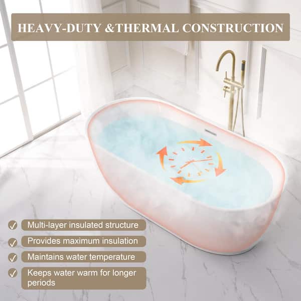 Lyra 67 in. x 31.5 in. Soaking Bathtub with Center Drain in Glossy White Freestanding Oval Pure Virgin Acrylic Bathtub