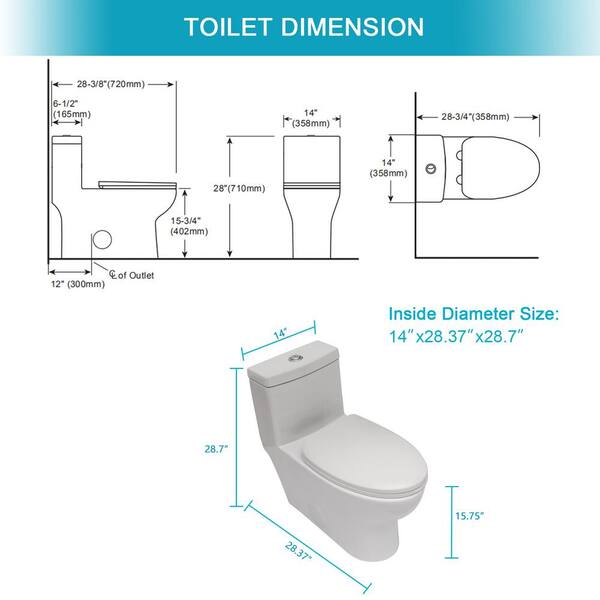 One-piece 1.1/1.6 GPF Dual Flush Elongated Toilet in White Seat Included