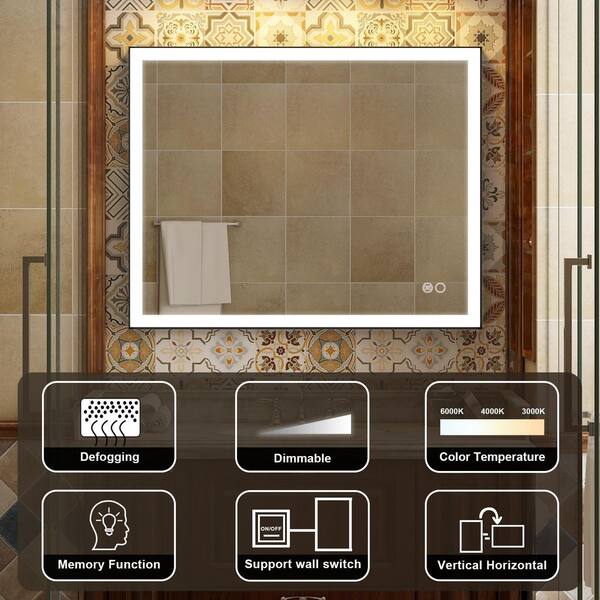 RECA 40 in W x 32 in. H Rectangular Single Aluminum Framed Anti-Fog LED Light Wall Bathroom Vanity Mirror in Matte Black