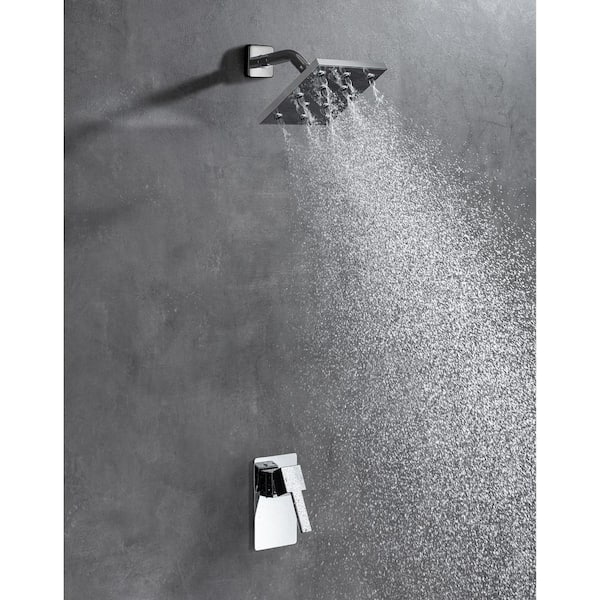 Single-Handle 1-Spray 6 in. Square Wall Mount Rain Fixed Shower Faucet in Chrome (Valve Included)
