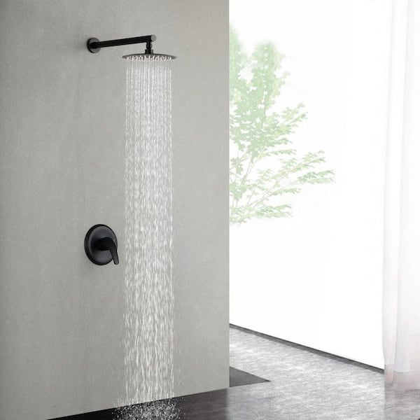 Single Handle 1-Spray Shower Faucet 2.5 GPM with Pressure Balance Valve and 8 in. Wall Mount Shower Head in Matte Black