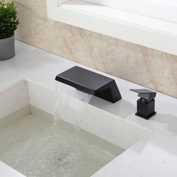 Single Handle Deck-Mount Waterfall Roman Tub Faucet in Matte Black
