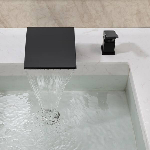 Single Handle Deck-Mount Waterfall Roman Tub Faucet in Matte Black