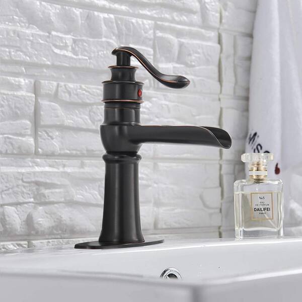 Single Handle Single Hole Bathroom Faucet with Deckplate Included and Supply Lines in Oil Rubbed Bronze Modern Faucet
