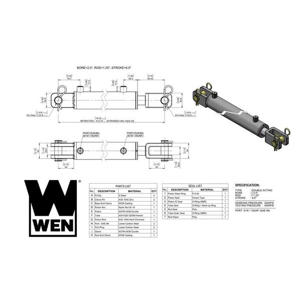 • Features a 2 in. bore, 6 in. stroke, and 1.25 in. rod diameter