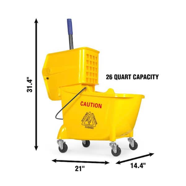 Rolling Mop Bucket with Down Press Wringer, 26-Quart Capacity