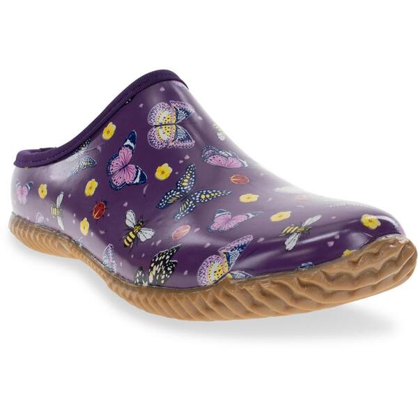 Women's Enchanted Insects Waterproof Rubber Clog - Purple Size-8