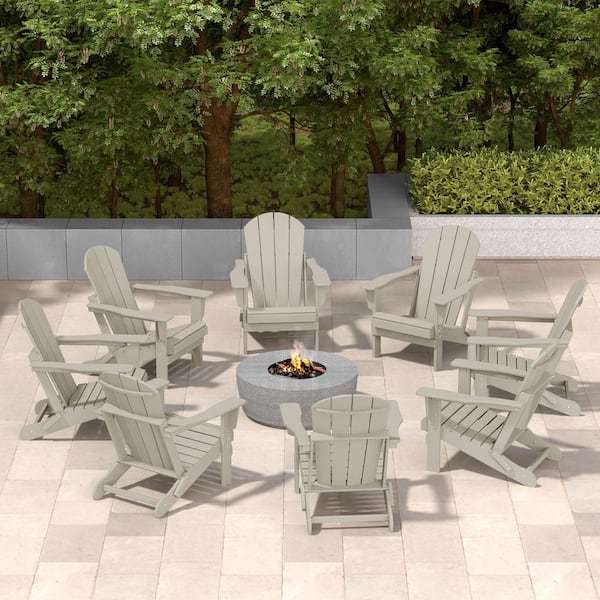 Addison Sand 8-Piece Plastic Folding Outdoor Patio Fade Resistant Adirondack Conversation Chair Set