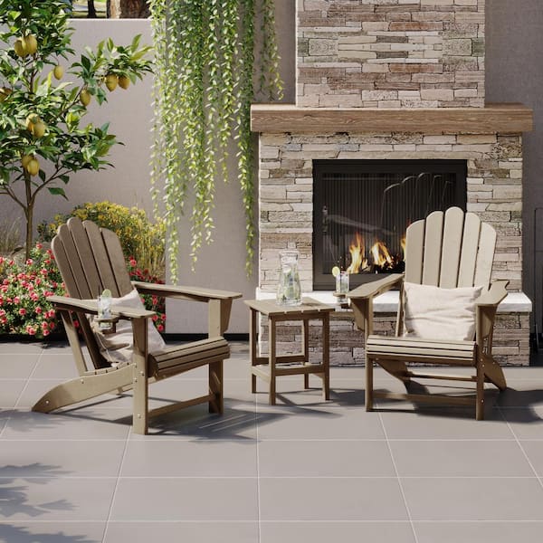 Aderson 3-Piece All Weather Outdoor Plastic Adirondack Chair Patio Conversation Set with Side Table in Weathered Wood