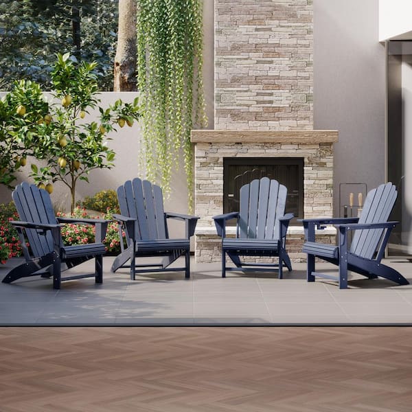 Aderson Set of 4 All Weather Fade Resistant Outdoor Patio HDPE Adirondack Chairs with Cup Holders in Navy Blue