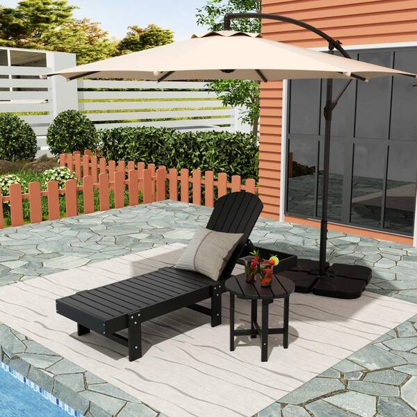 Altura 18 in. 2-Piece Black Outdoor Classic Adjustable Adirondack Backrest Chaise Lounge with Round Side Table Set