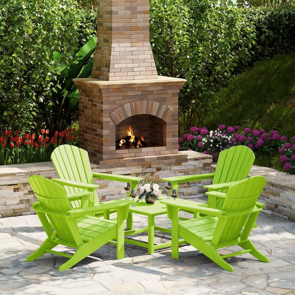 Altura Fade Resistant HDPE Plastic Lime 5-Piece Adirondack Chair Outdoor Patio Conversation Set, Square Coffee Table