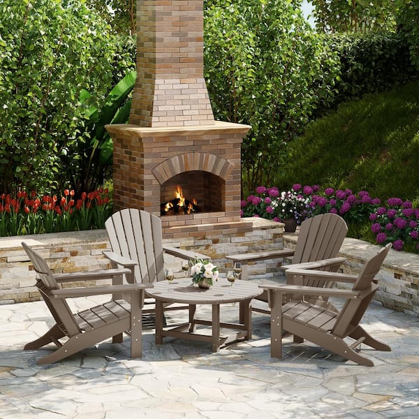 Altura Fade Resistant Plastic Weathered Wood 5-PC Adirondack Chair Outdoor Patio Conversation Set, Round Coffee Table