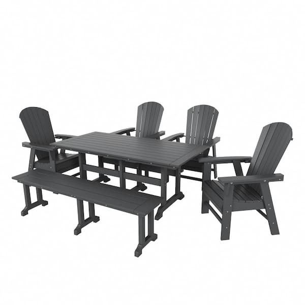 Altura Outdoor Patio Weather Resistant 6-Piece HDPE Plastic Gray Rectangle Adirondack Dining Set With Bench