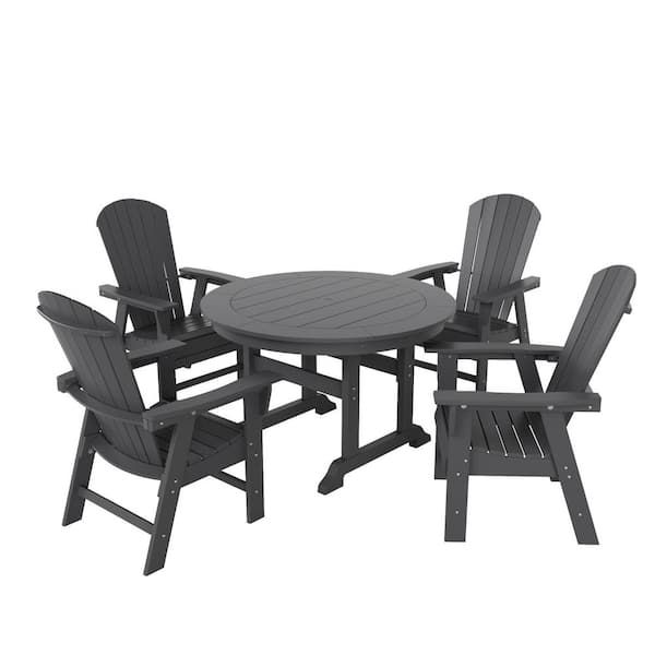 Altura Outdoor Patio Weather Resistant Gray 5-Piece HDPE Plastic Round Table Dining Set