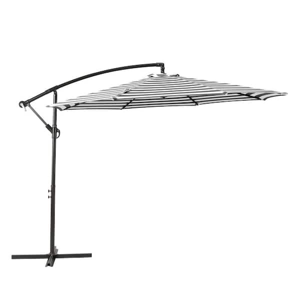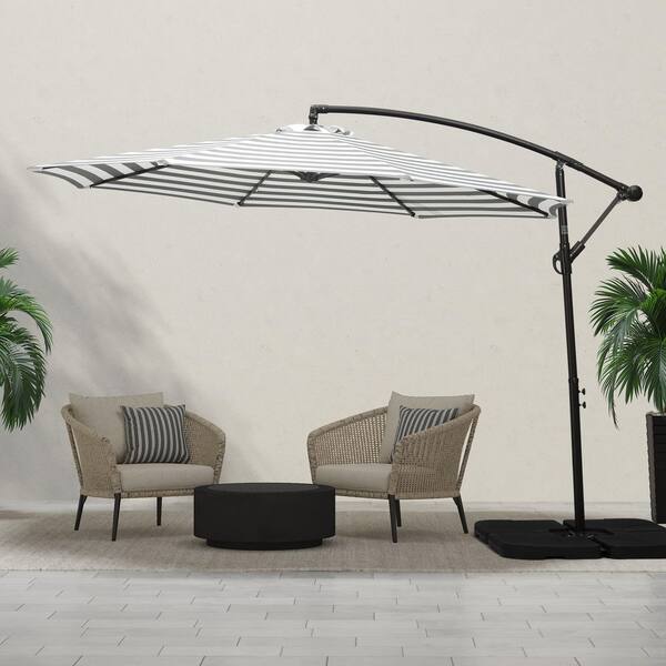 Bayshore Outdoor 10 ft. Hanging Offset Cantilever Patio Umbrella with Easy Crank Lift and Cross Base, Gray/White Stripe