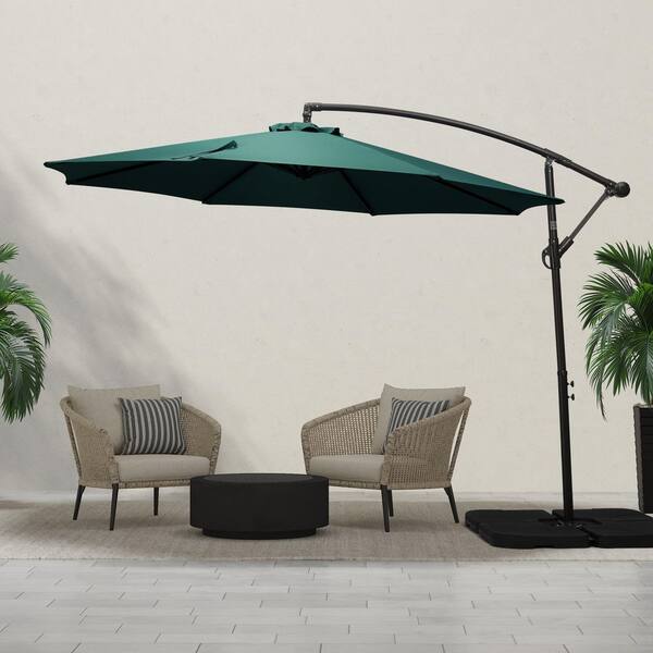Bayshore Outdoor 10 ft. Hanging Offset Cantilever Patio Umbrella with Easy Crank Lift and Cross Base in Dark Green