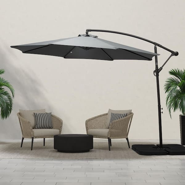 Bayshore Outdoor 10 ft. Hanging Offset Cantilever Patio Umbrella with Easy Crank Lift and Cross Base in Gray