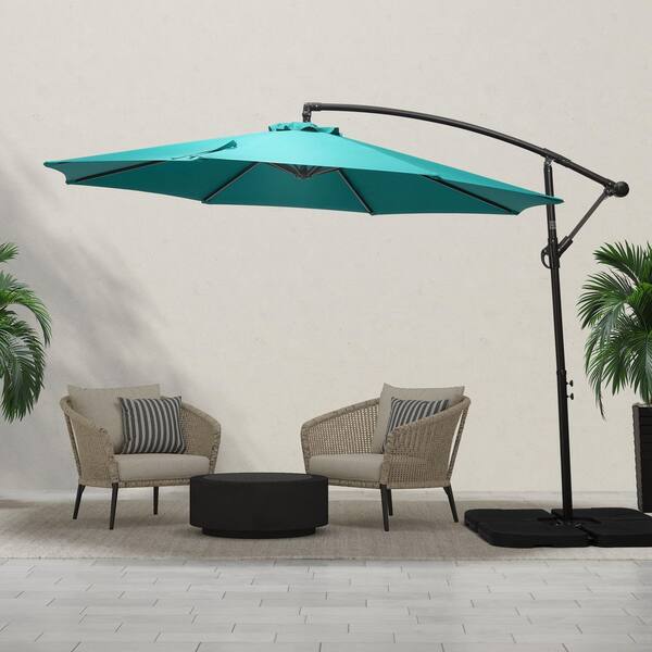 Bayshore Outdoor 10 ft. Hanging Offset Cantilever Patio Umbrella with Easy Crank Lift and Cross Base in Turquoise