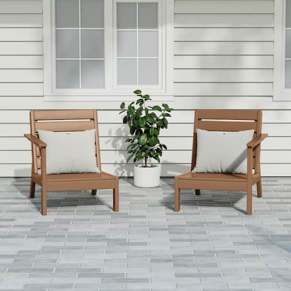 Birchwood Outdoor Patio 2-Piece Deep Seating HDPE Sectional Loveseat Arm Chairs Set in Teak