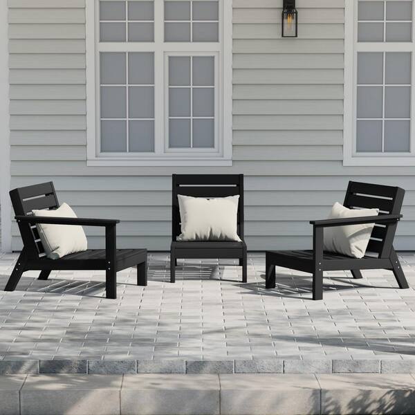 Birchwood Outdoor Patio 3-Piece Deep Seating HDPE Sectional Sofa Arm Chair Set in Black