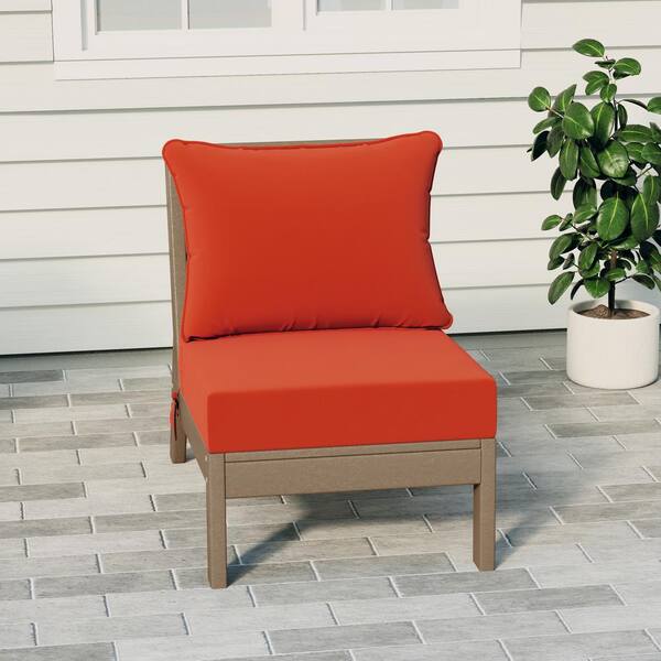 Birchwood Outdoor Patio Deep Seating HDPE Armless Lounge Chair in Weathered Wood with Orange Cushions