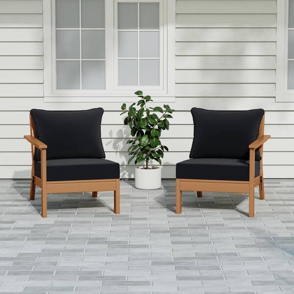 Birchwood Teak Arrangeable Outdoor Patio 2-Piece Deep Seating HDPE Loveseat Arm Chair Set with Black Cushions