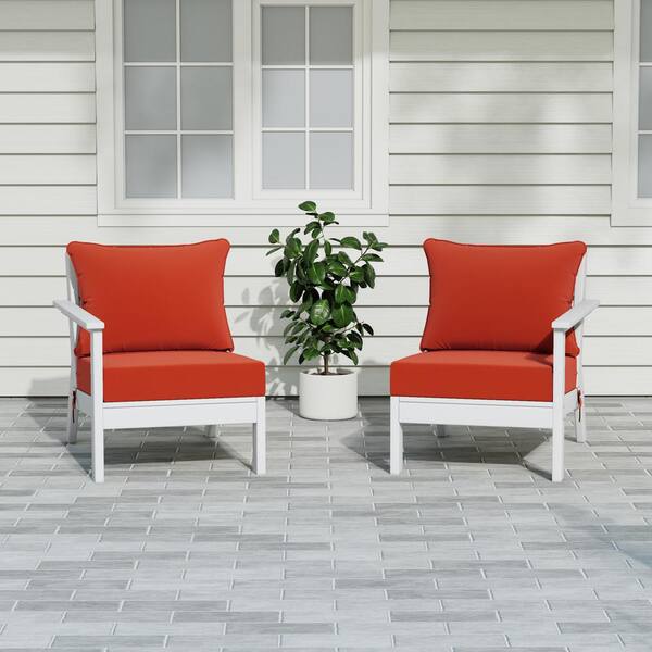 Birchwood White Arrangeable Outdoor Patio 2-Piece Deep Seating HDPE Loveseat Arm Chair Set with Orange Cushions