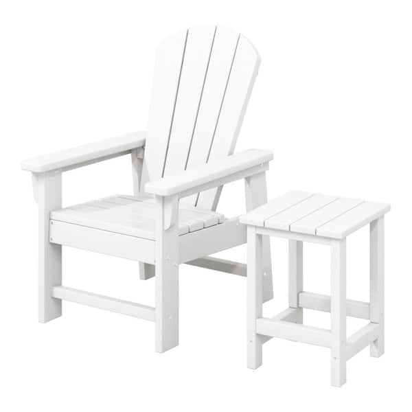 Children's Laguna Outdoor Patio All Weather Plastic Kids 2-Piece Adirondack Chair with Side Table in White