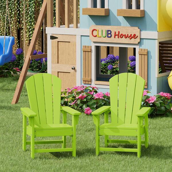 Children's Laguna Set of 2 Outdoor Patio All Weather Fade Resistant Kids Poly Plastic Adirondack Chairs in Lime