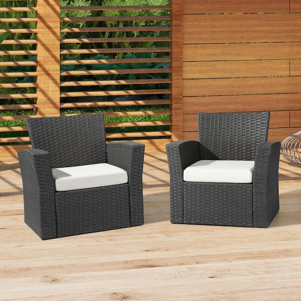 FadingFree (Set of 2) 20 in. x 19.5 in. x 4 in. Outdoor Patio Thick Square Lounge Chair Seat Cushions with Ties in White