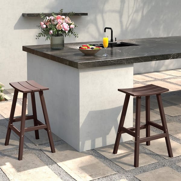 Franklin Dark Brown 24 in. Poly HDPE Fade Resistant Outdoor Patio Saddle Seat Counter Height Bar Stool (Set of 2)