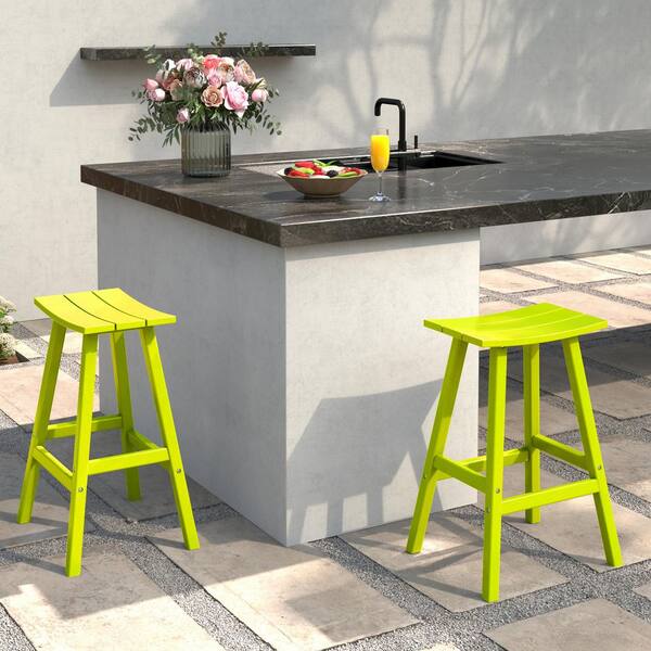 Franklin Lime Green 24 in. Poly HDPE Fade Resistant Outdoor Patio Saddle Seat Counter Height Bar Stool (Set of 2)