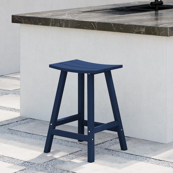 Franklin Navy Blue 24 in. Poly HDPE Fade Resistant Outdoor Patio Saddle Seat Counter Height Bar Stool