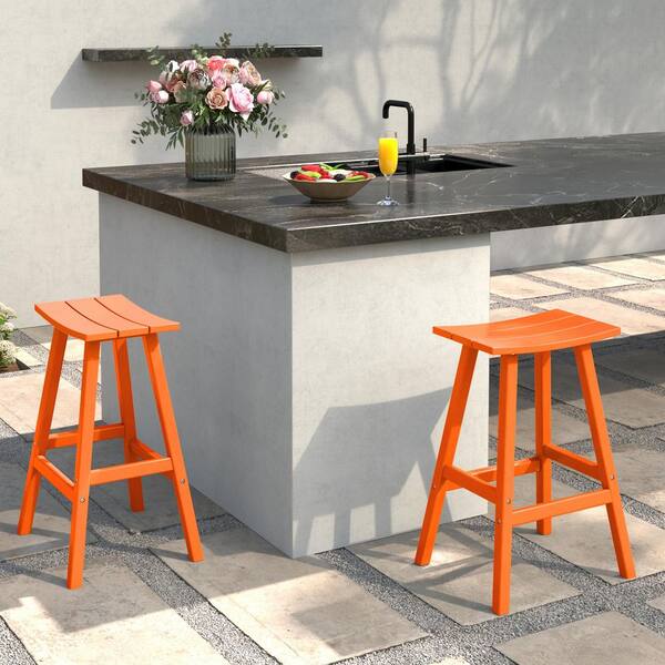 Franklin Orange 24 in. Poly HDPE Fade Resistant Outdoor Patio Saddle Seat Counter Height Bar Stool (Set of 2)