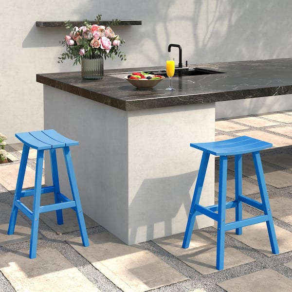 Franklin Pacific Blue 24 in. Poly HDPE Fade Resistant Outdoor Patio Saddle Seat Counter Height Bar Stool (Set of 2)