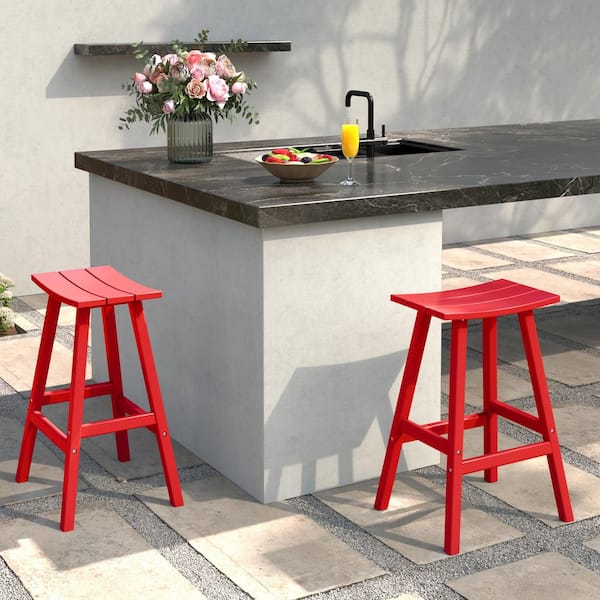 Franklin Red 24 in. Poly HDPE Fade Resistant Outdoor Patio Saddle Seat Counter Height Bar Stool (Set of 2)
