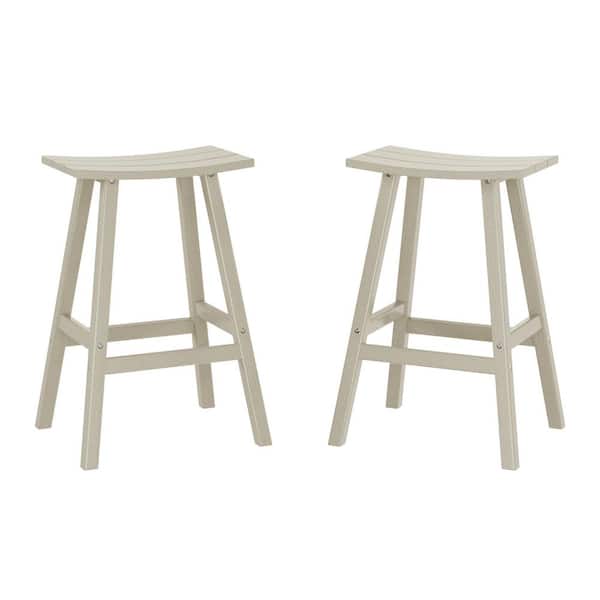 Franklin Sand 24 in. Poly HDPE Fade Resistant Outdoor Patio Saddle Seat Counter Height Bar Stool (Set of 2)