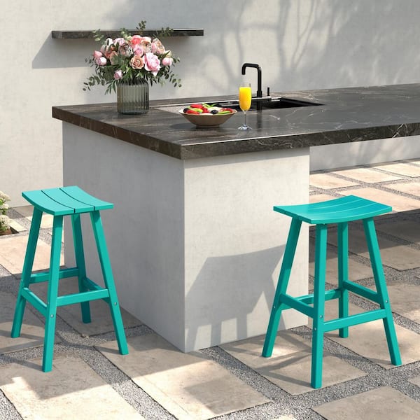 Franklin Turquoise 24 in. Poly HDPE Fade Resistant Outdoor Patio Saddle Seat Counter Height Bar Stool (Set of 2)
